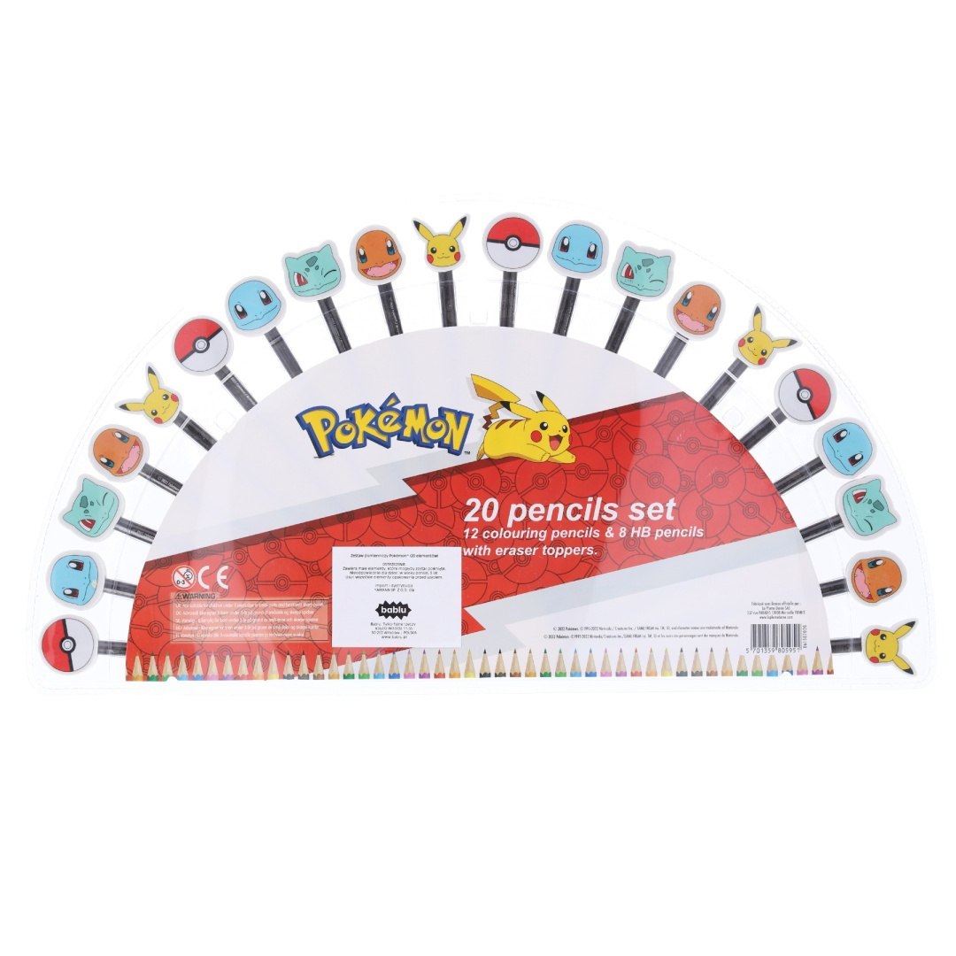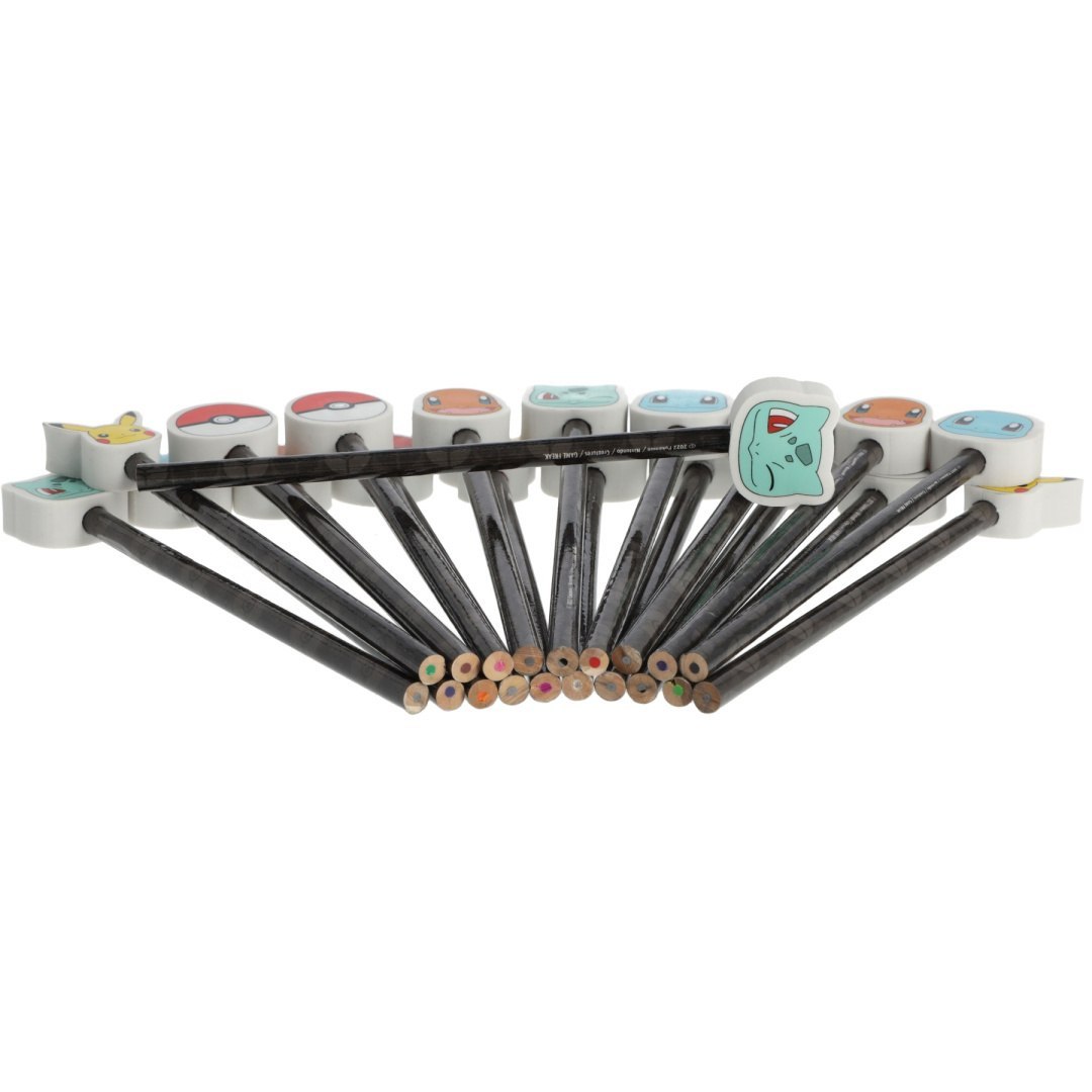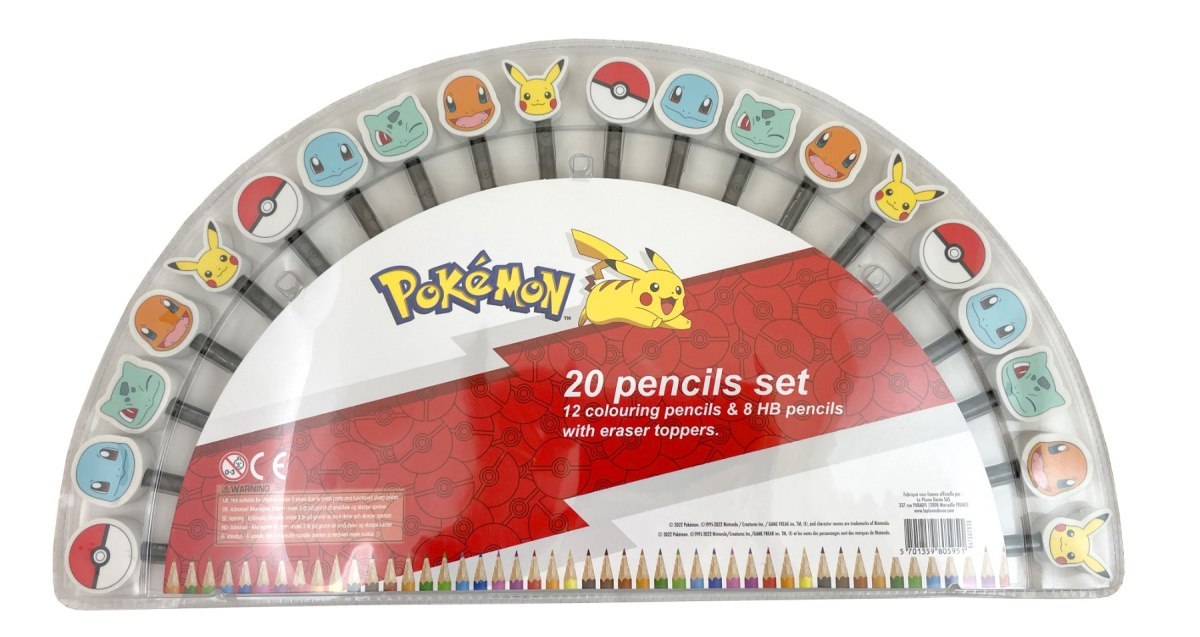 Oto fajny zestaw 20 elementów w motywie Pokémon. Ten zestaw zawiera 12 kolorowych kredek i 8 ołówków z gumkami w kształcie pokemonów, które pozwolą Ci wyrazić swoją kreatywność. To idealny prezent dla miłośników Pokémonów. Złap je wszystkie!