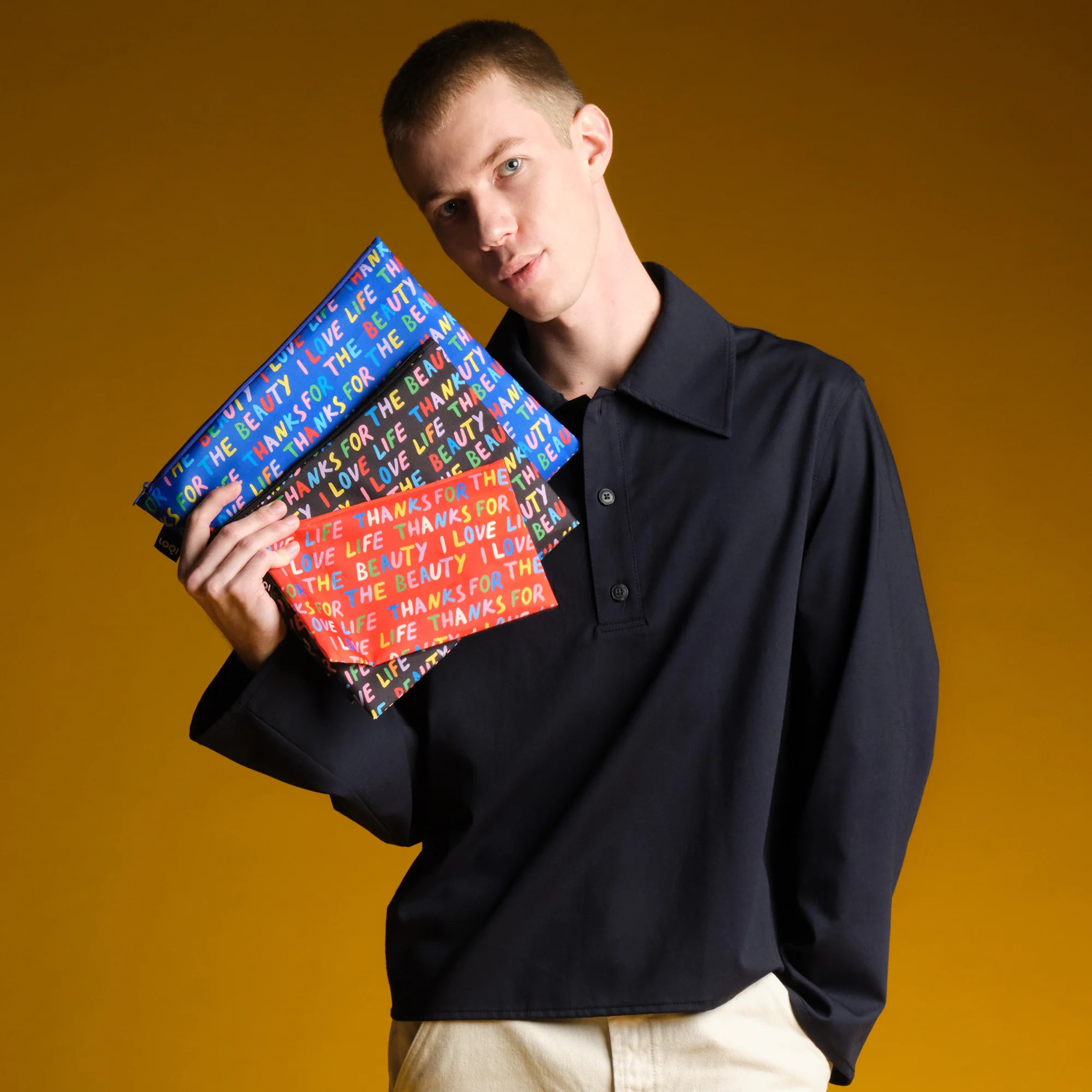 Czasem wystarczy odrobina koloru, by wszystko zaczęło się układać. Zestaw trzech saszetek LOQI Love Life to ukłon w stronę codziennych drobiazgów, które warto mieć pod ręką – i w stronę słów, które warto mieć w głowie. Optymistyczny design przyciąga wzrok, a trzy praktyczne rozmiary ułatwiają organizację: od kosmetyków i dokumentów po ładowarki i notatki. W torbie, walizce czy szufladzie – wszystko ma tu swoje miejsce.