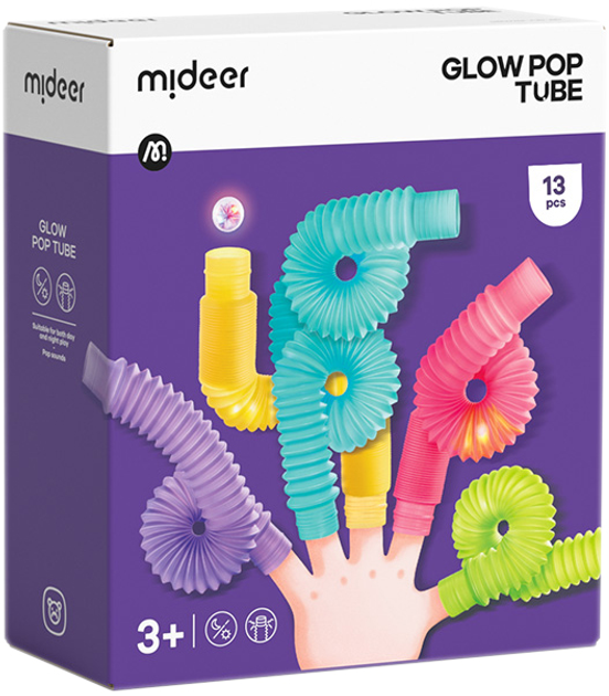 Miękkie jak makaroniki, sprężyste jak sprężynki i świecące jak świetliki w słoiku. Ten zestaw świecących rurek Mideer pozwala wyginać, łączyć i skręcać rurki, aż powstaną tunele, bransoletki albo ogon jednorożca.